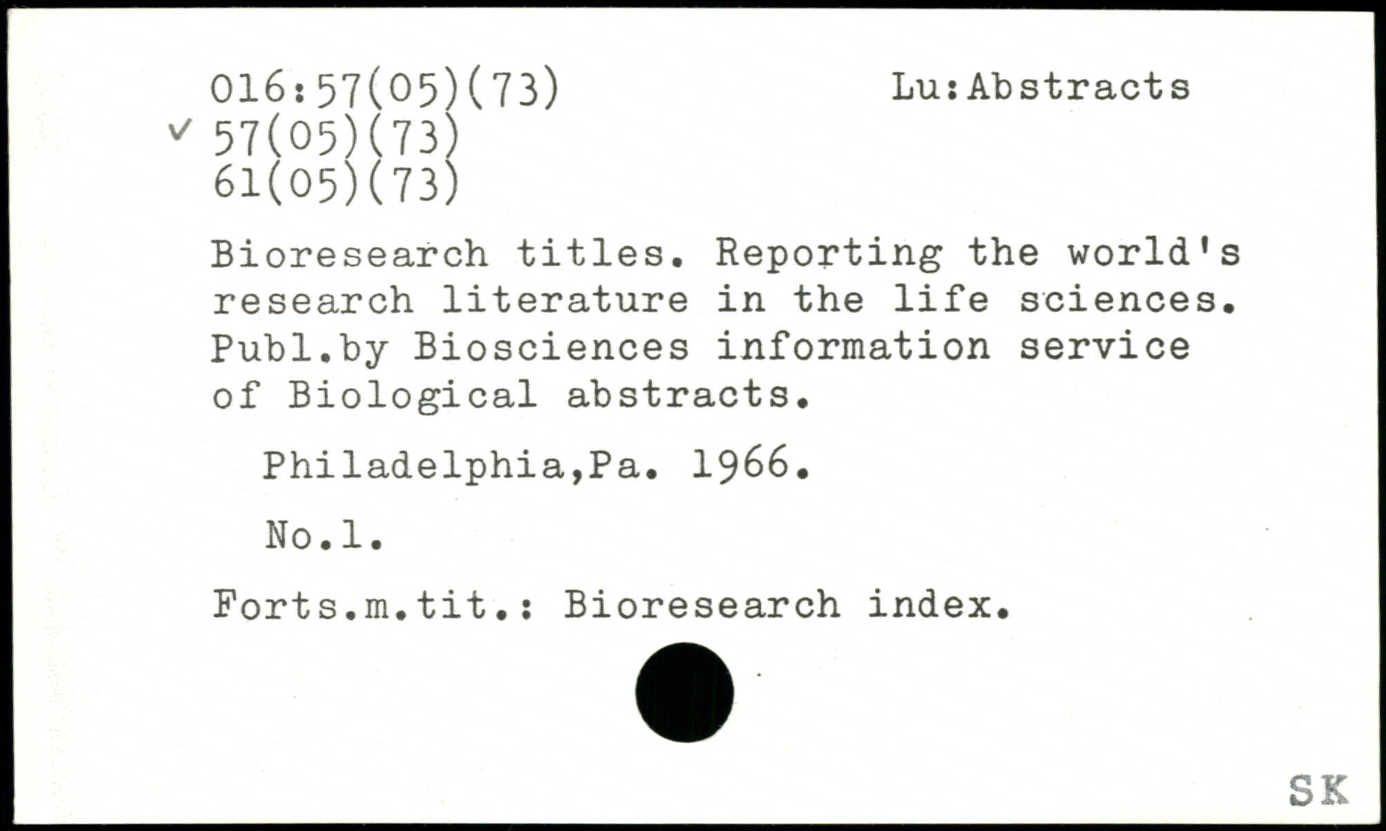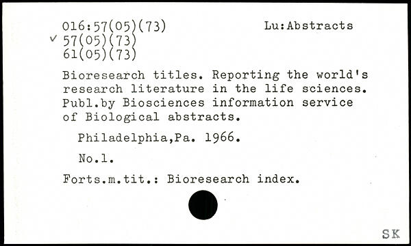 UDK: 016:57(05)(73), 57(05)(73), 61(05)(73)