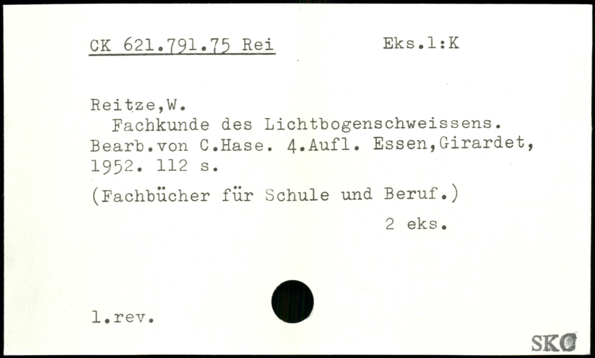 Fachkunde des Lichtbogenschweissens. Bearb.von C.Hase.