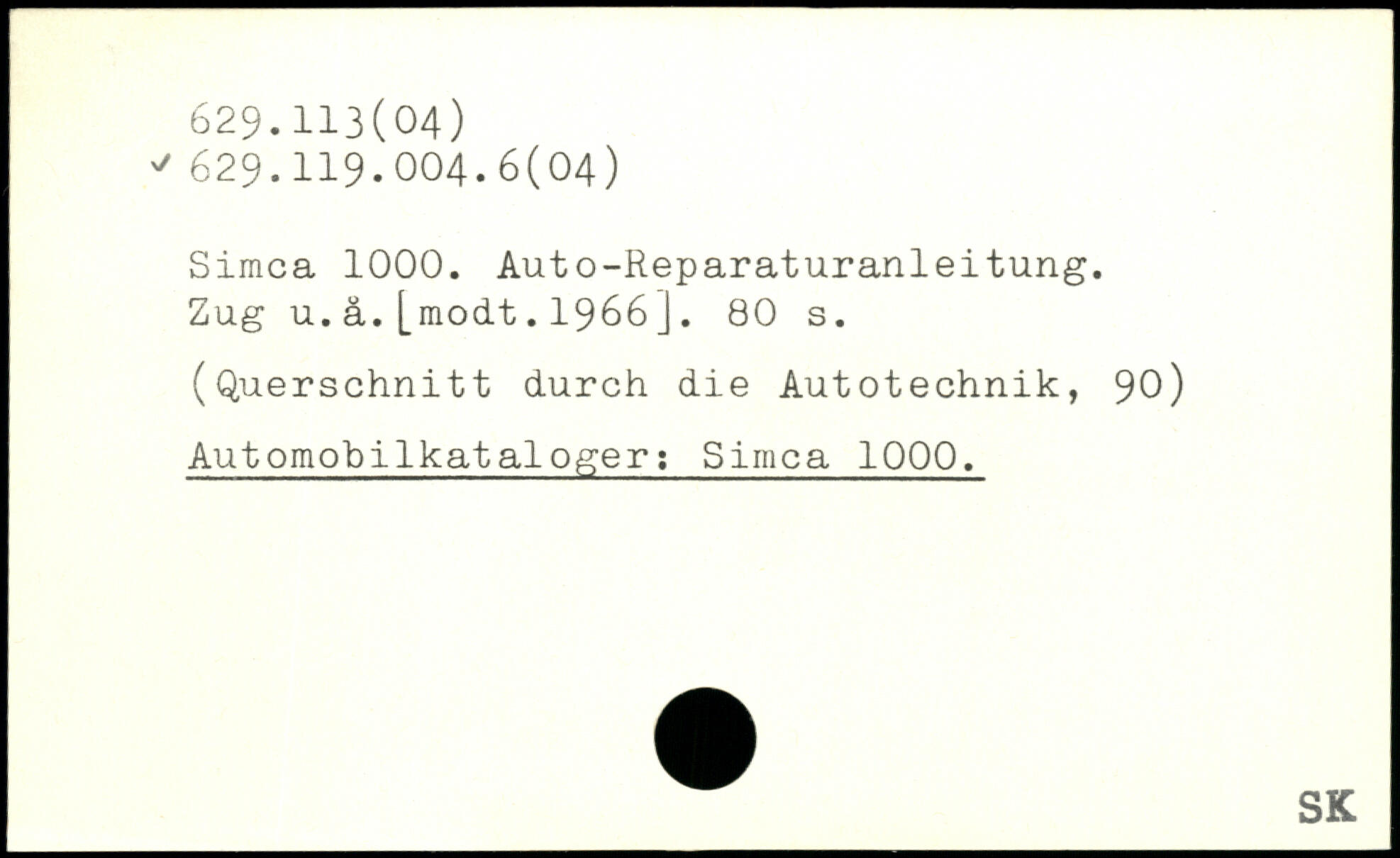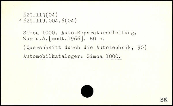 Simca 1000. Auto-Reparaturanleitung. Zug u.ä.[modt.1966j.
