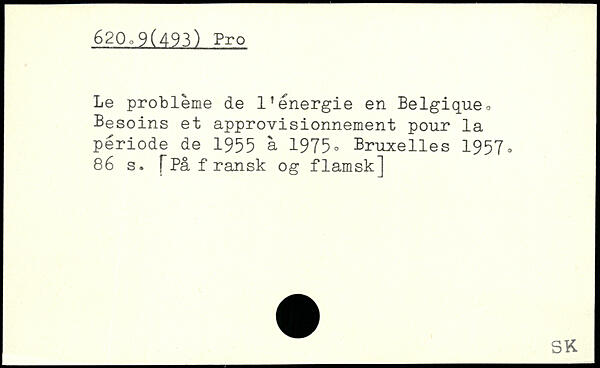 Le problème de l'énergie en Belgique, Besoins et approvisionnement pour la période de 1955 à 1975o