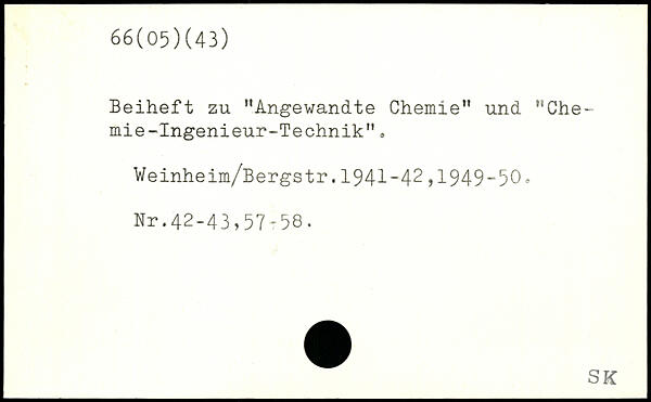 Beiheft zu "Angewandte Chemie" und "Che-mie-Ingenieur-Technik". Veinheim/Bergstr.1941-42,1949-50. Nr.42-43,57-58.