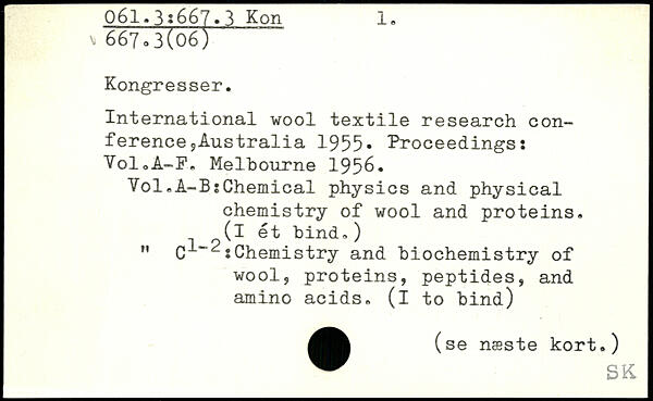 International wool textile research conference ,Australia 1955, Proceedings: VoloA-F. Melbourne 1956. Yol.A-BiChemical physics and physical chemistry of wool and proteins.