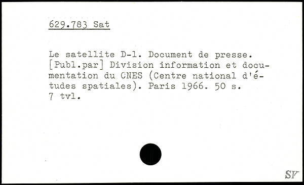 Le satellite D-l. Document de presse. [Publ.par] Division information et documentation du CNES (Centre national d’études spatiales).
