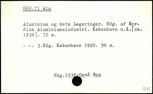 Aluminium og dets Legeringer. TJdg. af Nordisk Aluminiumsindustri. København u.å.[ca. 1938].