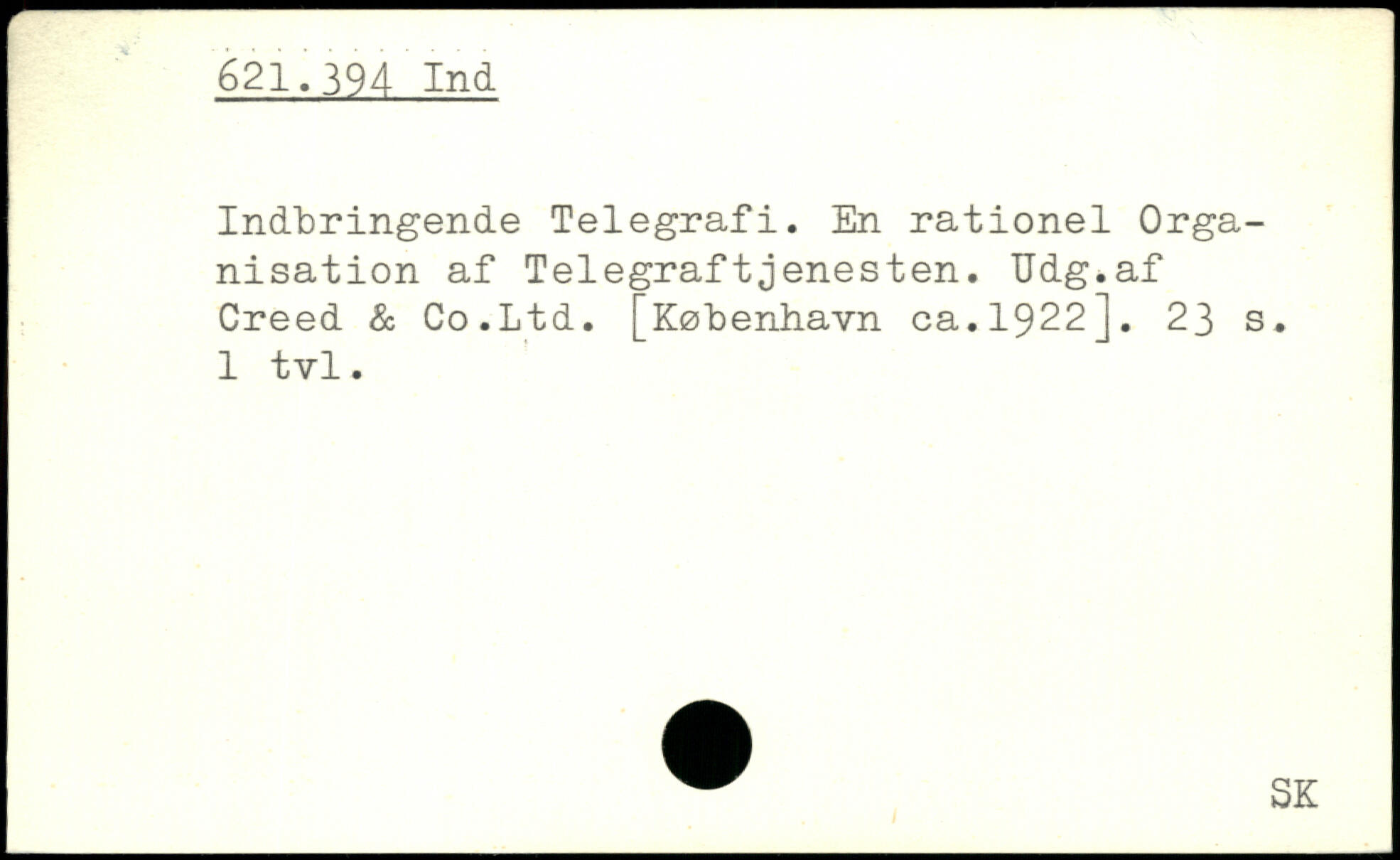 Indbringende Telegrafi. En rationel Organisation af Telegraftjenesten. Udg.af Creed & Co.Ltd. [København ca. 1922].