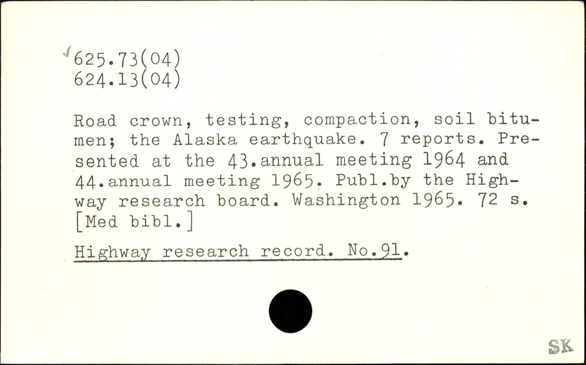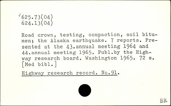 Road crown, testing, compaction, soil bitumen; the Alaska earthquake. 7 reports. Presented at the 43.annual meeting 1964 and 44.annual meeting 1965.