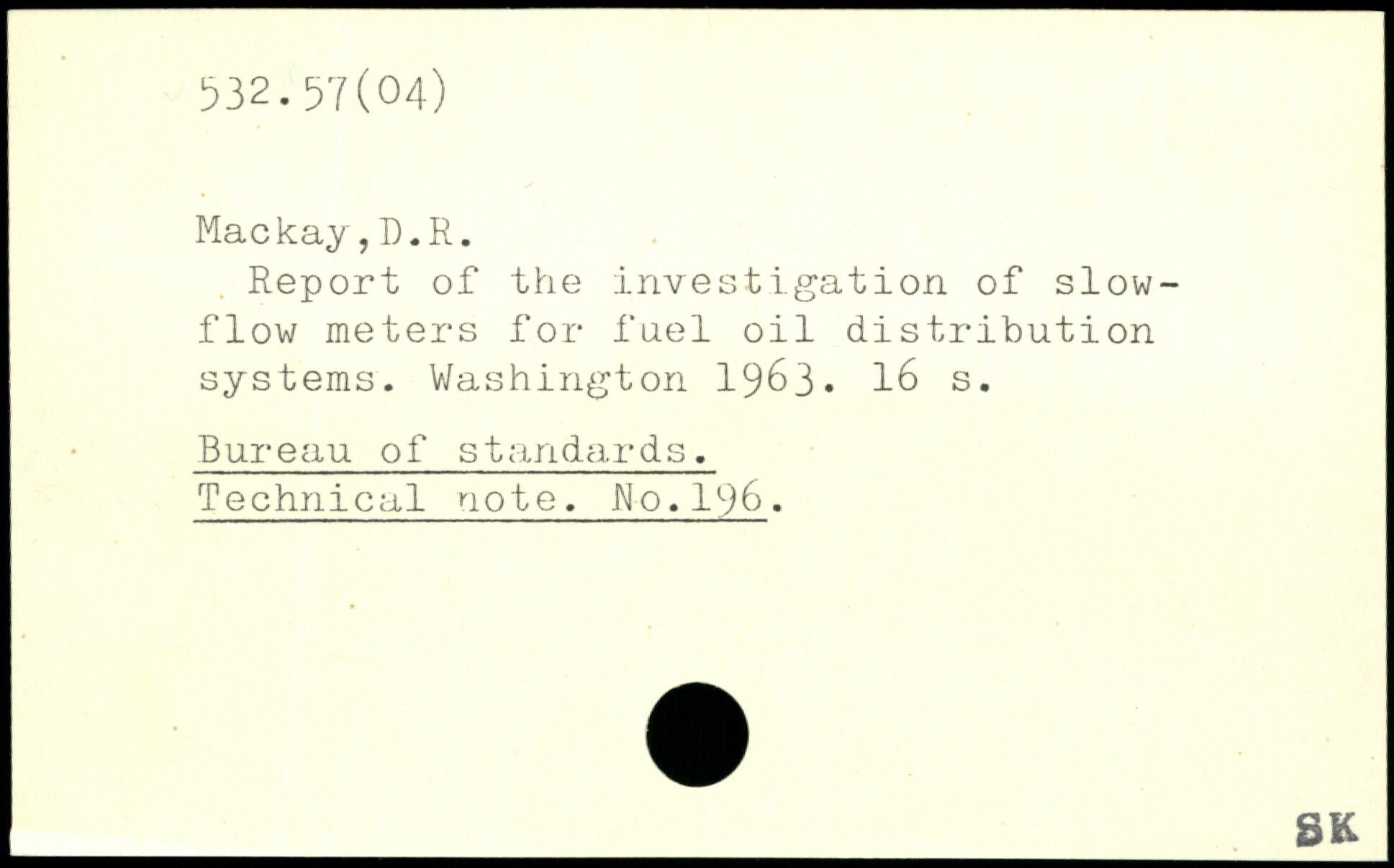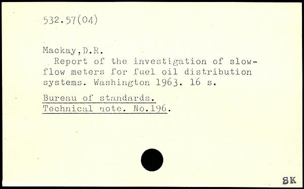 Report of the Investigation of slow-flow meters for fuel oil distribution Systems.