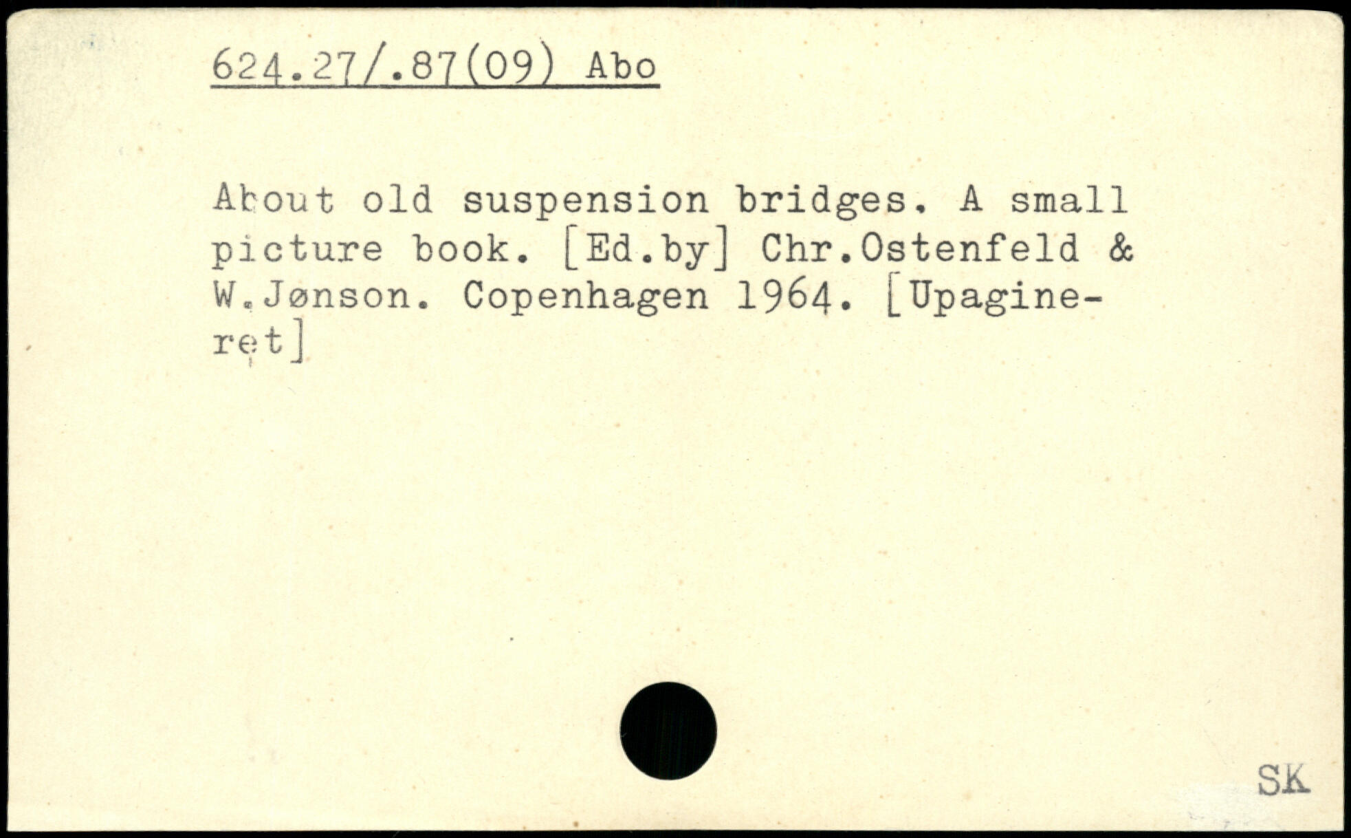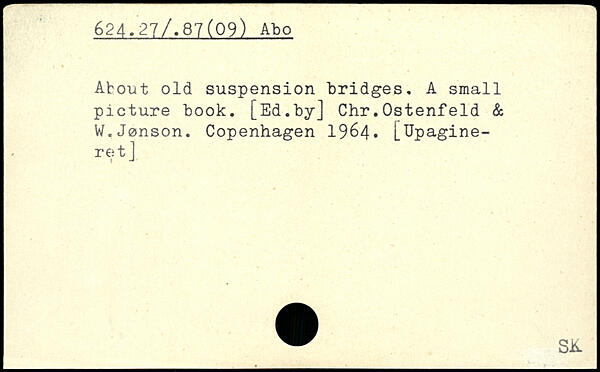 About old suspension bridges, A small picture book. [Ed.by] Chr.Ostenfeld W. Jenson.