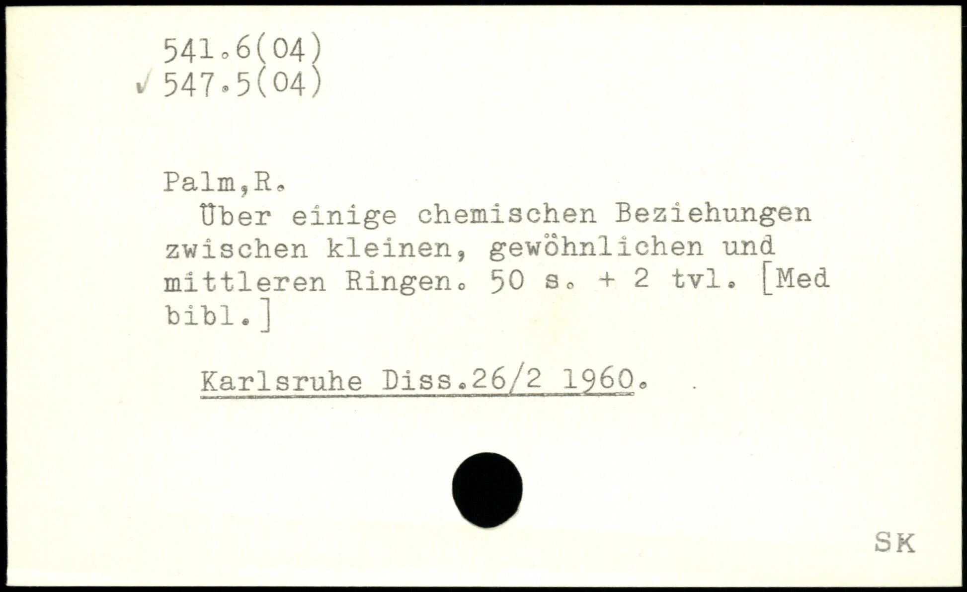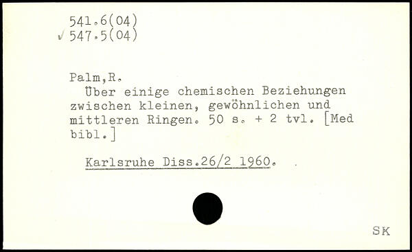 Uber einige chemischen Beziehungen zwischen kleinen, gewöhnlichen und mittleren Ringeno 50 + 2 tvl, [Med bibl. ] Karlsruhe Piss.26/2 196Qe