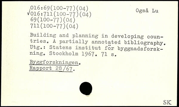 Building- and planning in developing- countries, A partially annotated bibliography, Utg.: Statens institut for byggnadsforskning