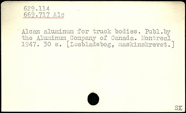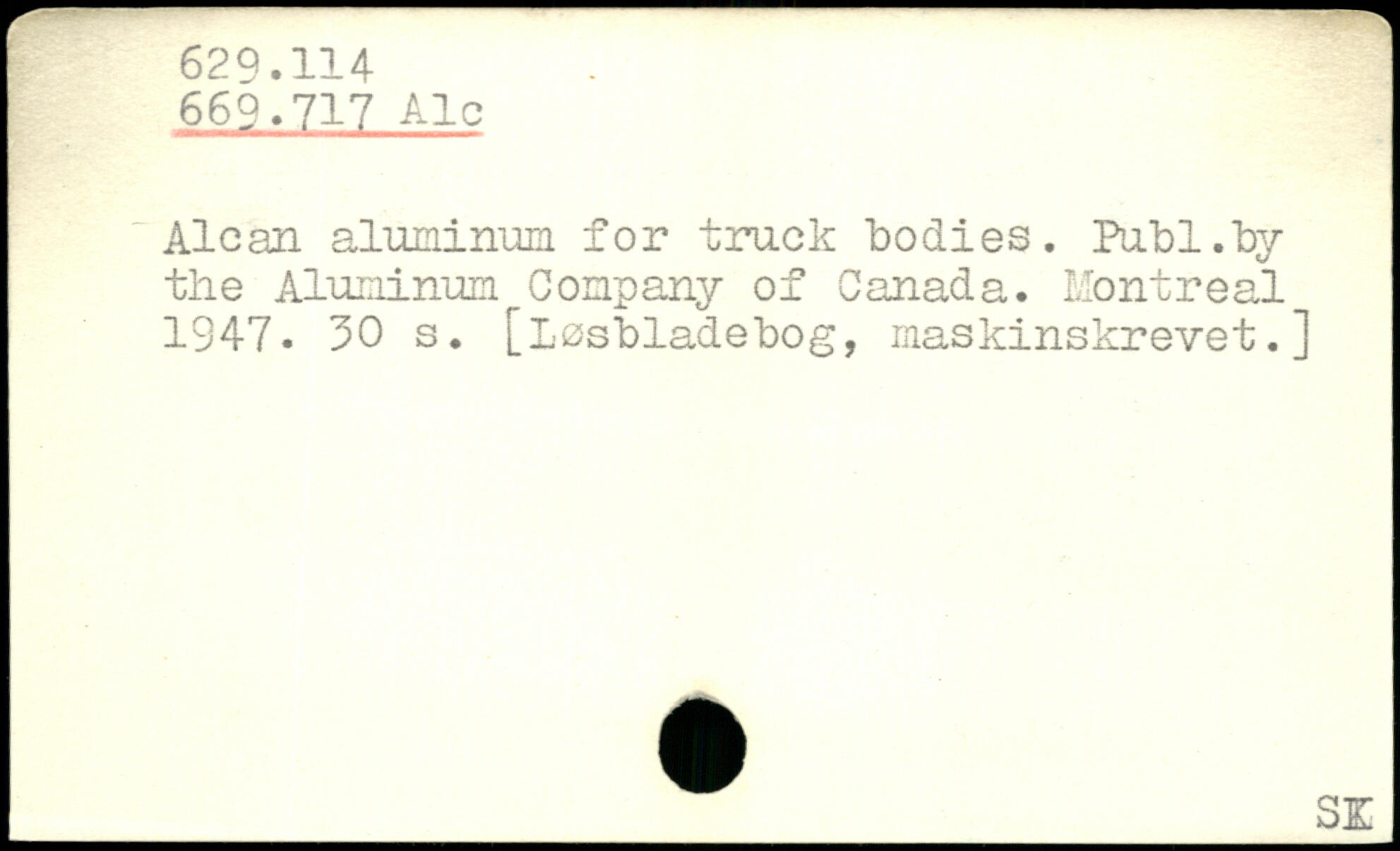 Ålcan aluminum for truck bodies. Bibi.by tlie Aluminum Company of Canada. Montreal 1947.