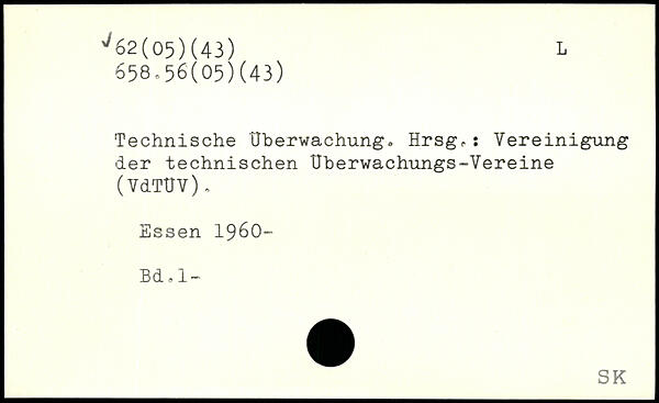 Technische Überwachung. Hrsg,: Vereinigung der technischen Überwachungs-Vereine (VdTUV)