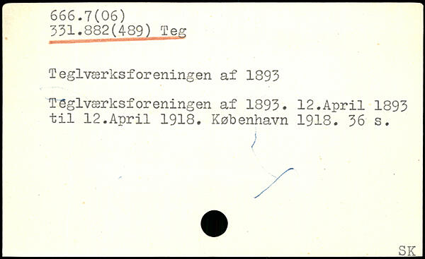 Teglværksforeningen af 1893 Teglværksforeningen af 1893. 12.April 1893 til 12.April 1918.