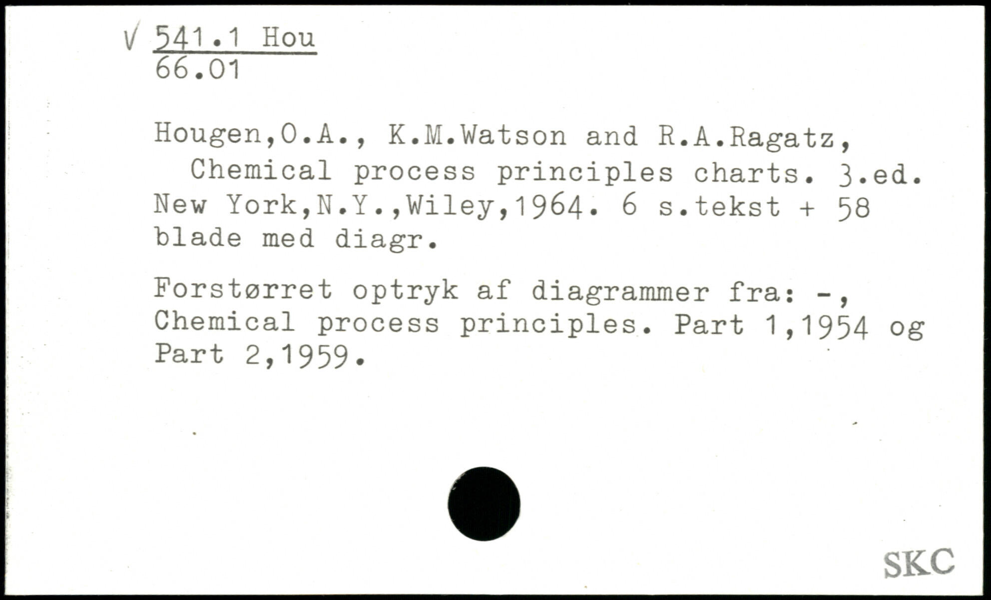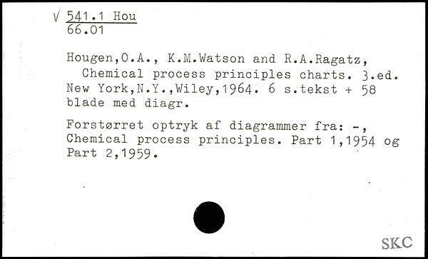 Hougen,0.A., K.M.Watson and R.A.Ragatz, Chemical process principles charts.
