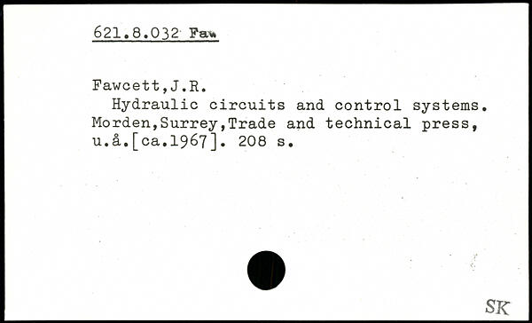 Hydraulic circuits and control systems. Morden,Surrey,Trade and technical press, u.a.[ca.1967].