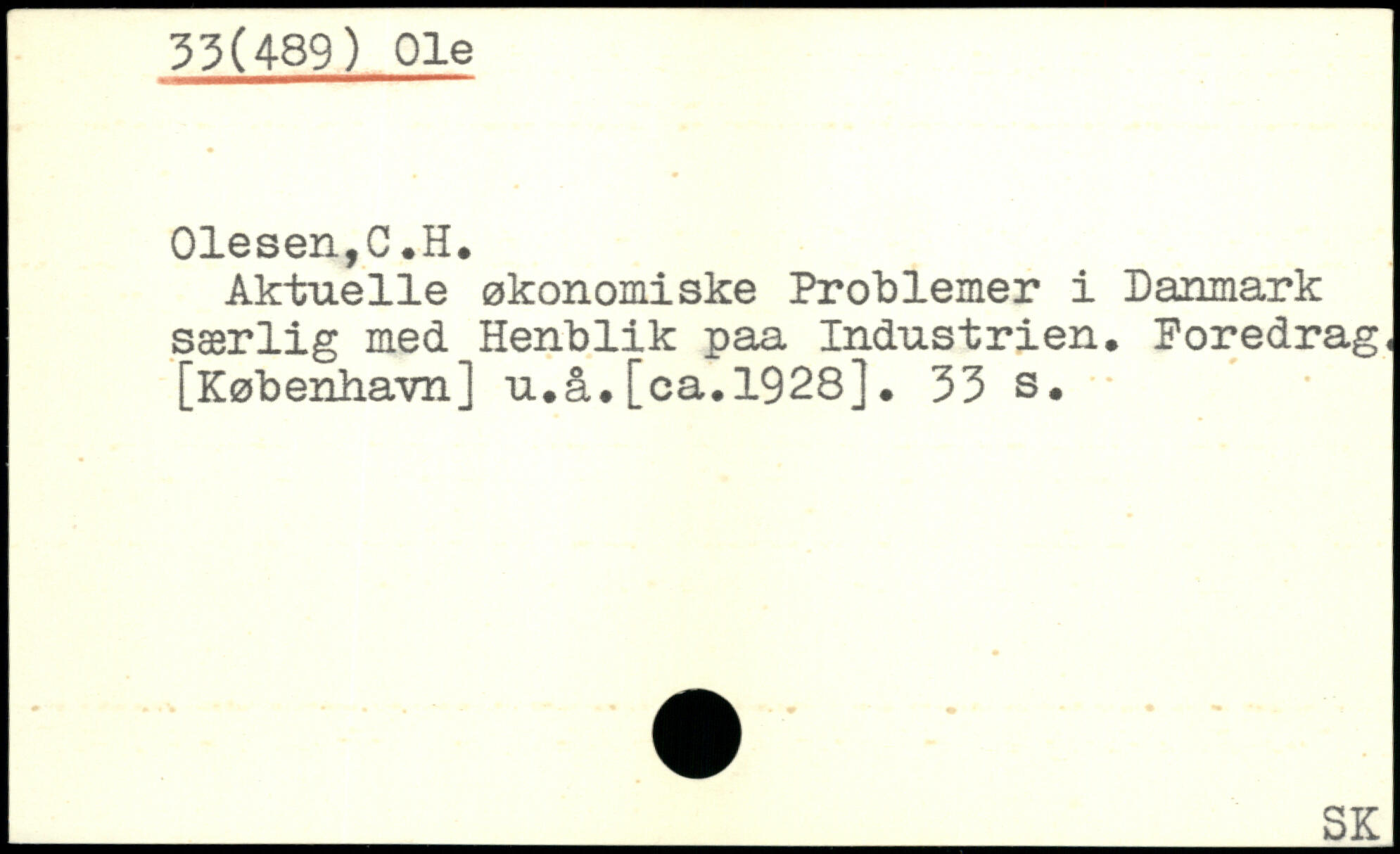 Aktuelle økonomiske Problemer i Danmark særlig med Henblik paa Industrien. Poredrag, [København] u.å.[ca.1928].