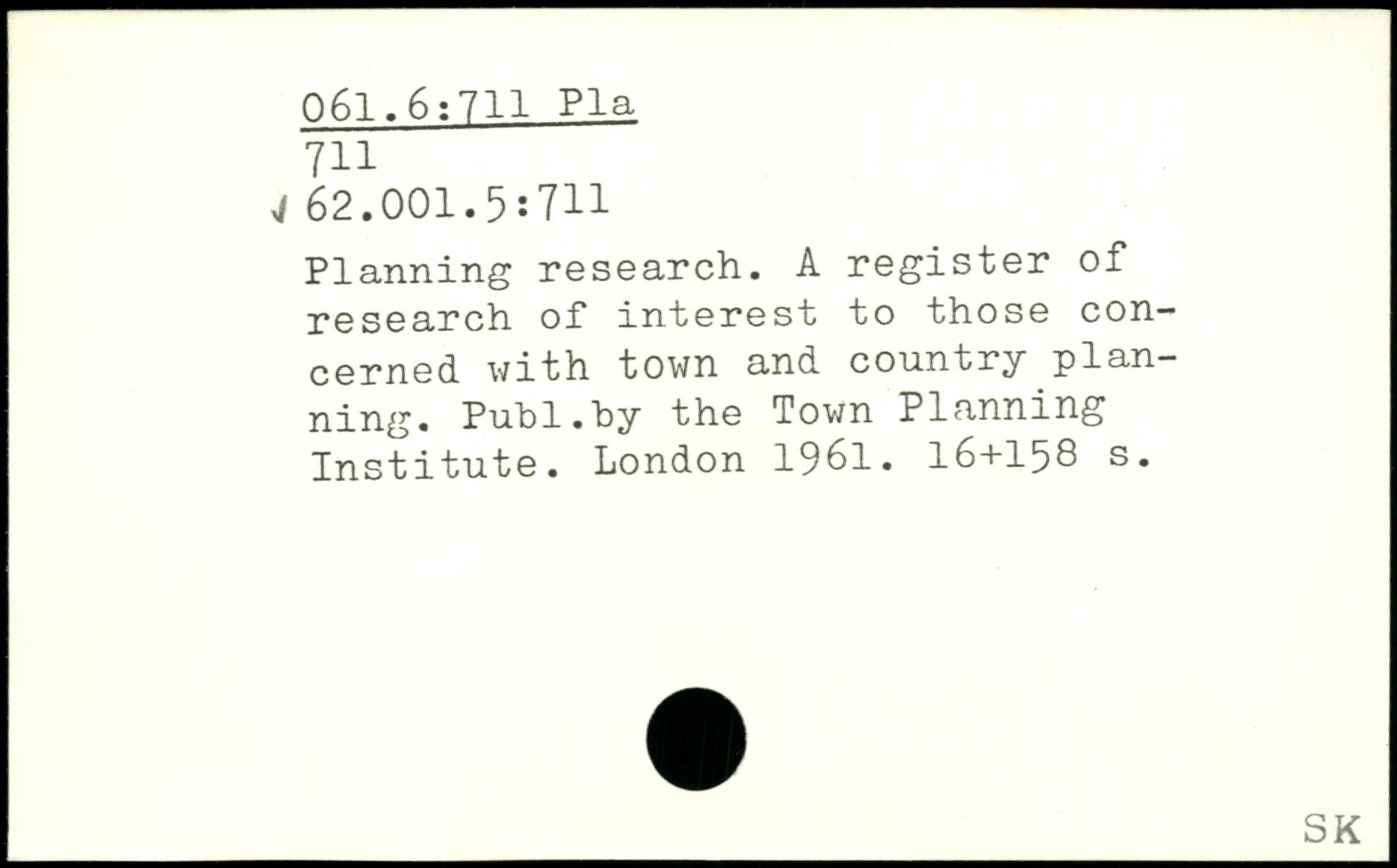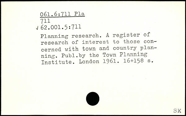 Planning research. A register of research of interest to those concerned with town and country planning.