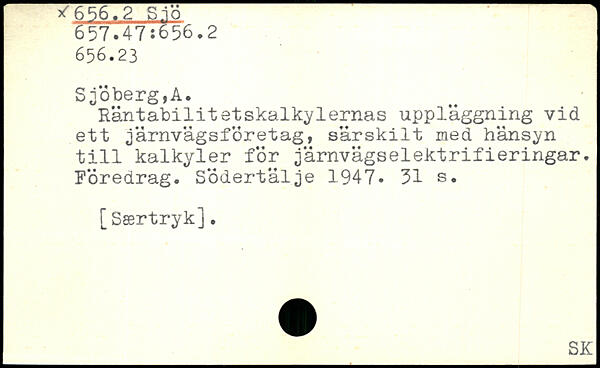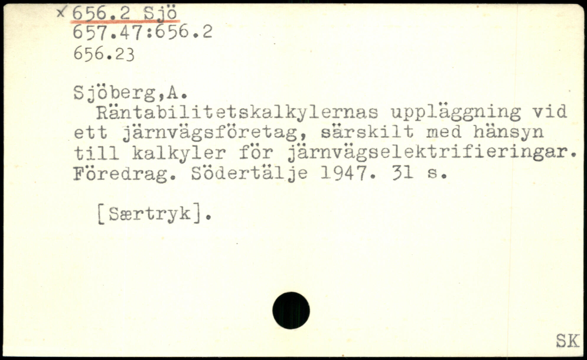 Räntabilitetskalkylernas uppläggning vid ett järnvägsföretag, särskilt med hänsyn till kalkyler för järnvägselektrifieringar. Föredrag.