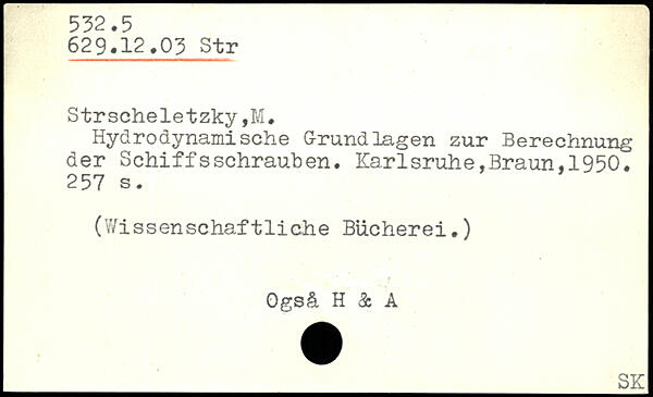 Hydrodynamische G-rund lagen zur Berechnung der Schiffsschrauben.