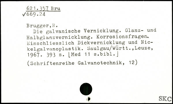 Die galvanische Vernicklung. Glanz- und HalbglanzVernicklung. Korrosionsfragen. Einschliesslich Dickvernicklung und Nickelgalvanoplastik.