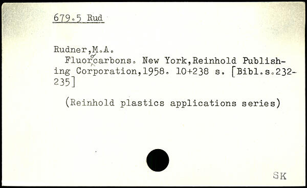 Fluorcarbons, New York,Reinhold Publishing Corporation,1958. 10+238 s. rBibl,s0232- 235]