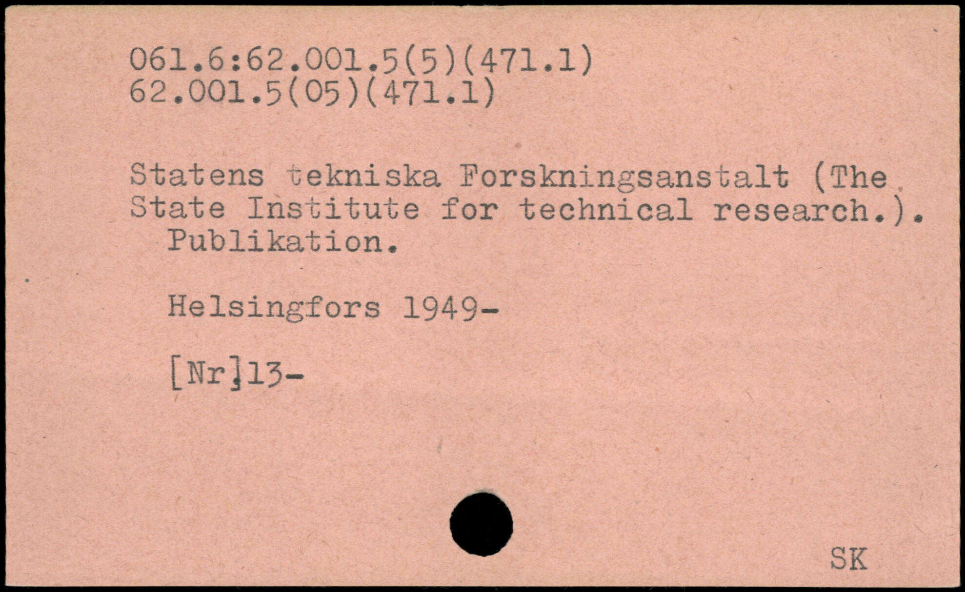 Statens tekniska Porskningsanstalt (The. State Institute for technical research.). Publikation.