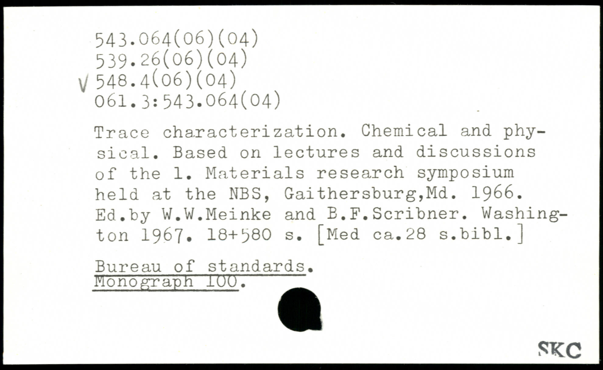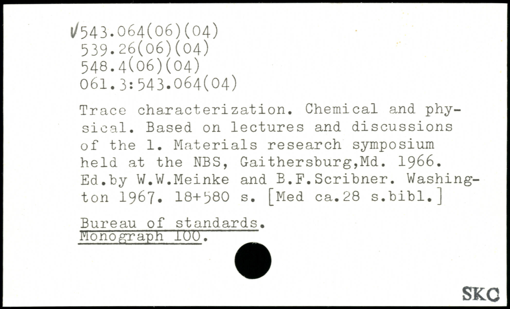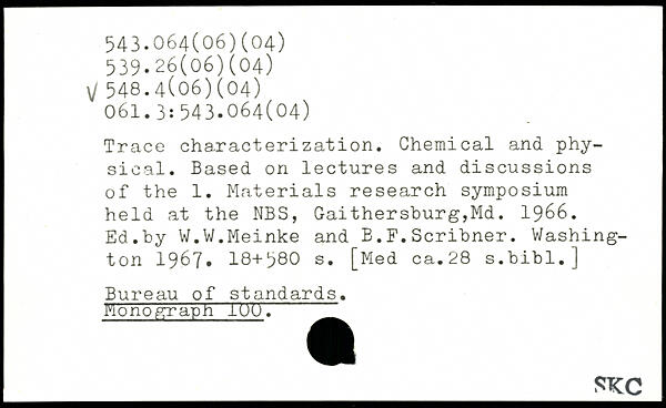 Trace characterization. Chemical and physical. Based on lectures and discussions of the 1. Materials research symposium held at the NBS, Gaithersburg,Md. 1966. Ed.by W.W.Meinke and B.F.Scribner.