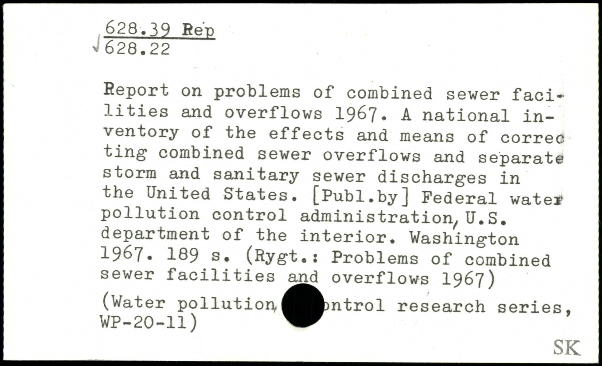 Report on problems of combined sewer facilities and overflows 1967. A national inventory of the effects and means of correc ting combined sewer overflows and separate storm and. sanitary sewer discharges in the United States.