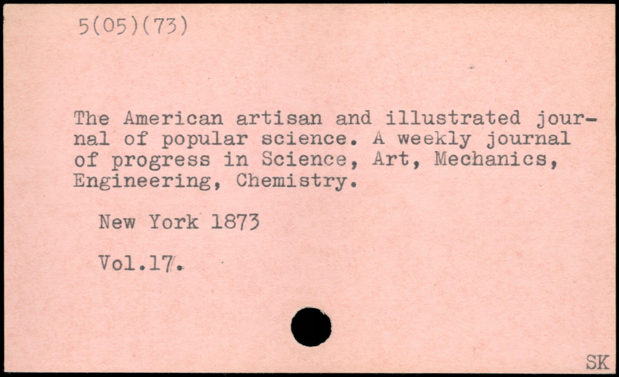 The American artisan and illustrated journal of popular science. A weekly journal of progress in Science, Art, Mechanics, Engineering, Chemistry.