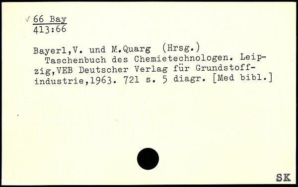 Taschenbuch des Chemietechnologen. Leipzig, VEB Deutscher Verlag für Grundstoffindustrie ,1963.