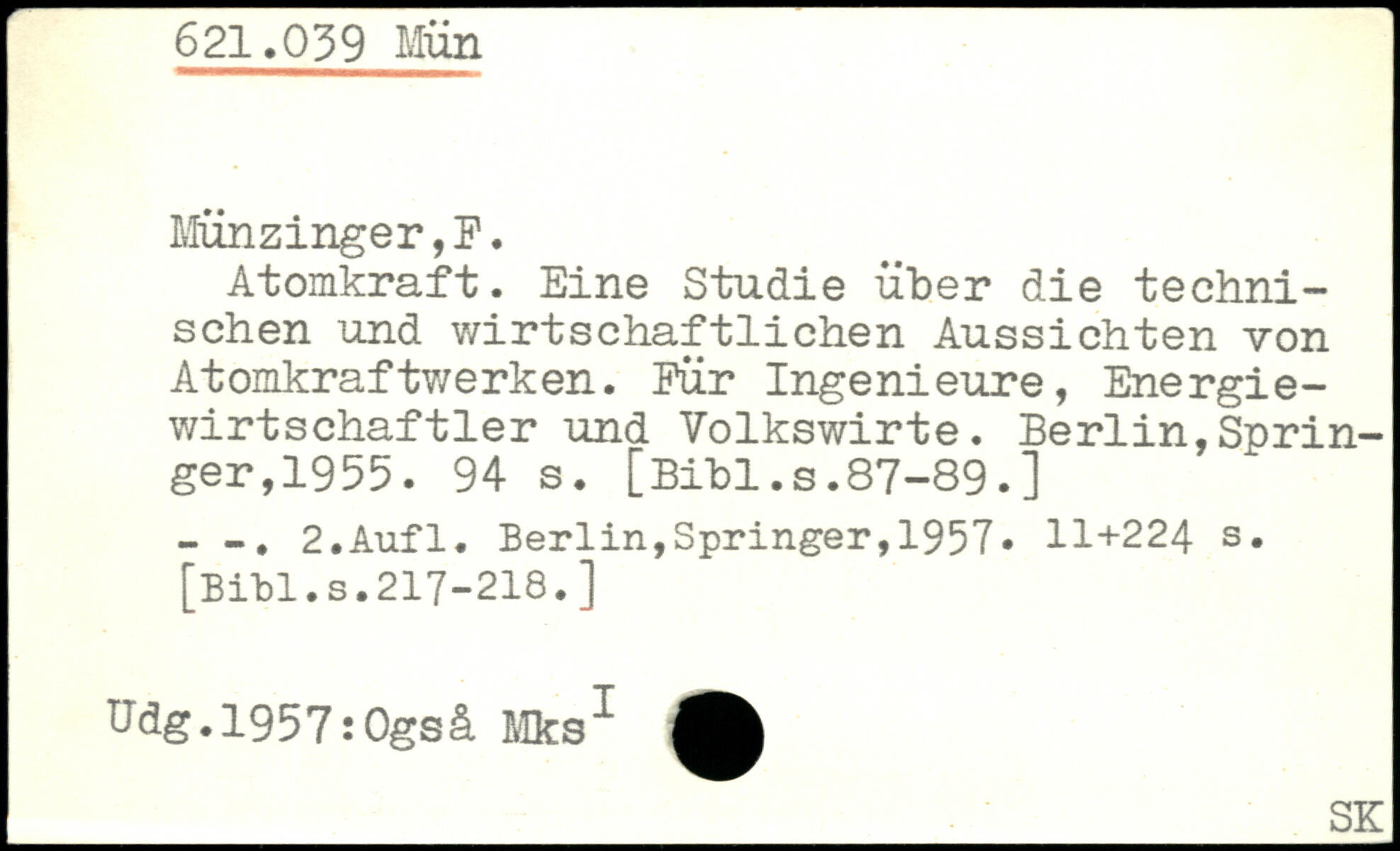 Atomkraft. Eine Studie über die technischen und wirtschaftlichen Aussichten von Atomkraftwerken. Pur Ingenieure, Energiewirtschaftler und Volkswirte.