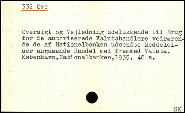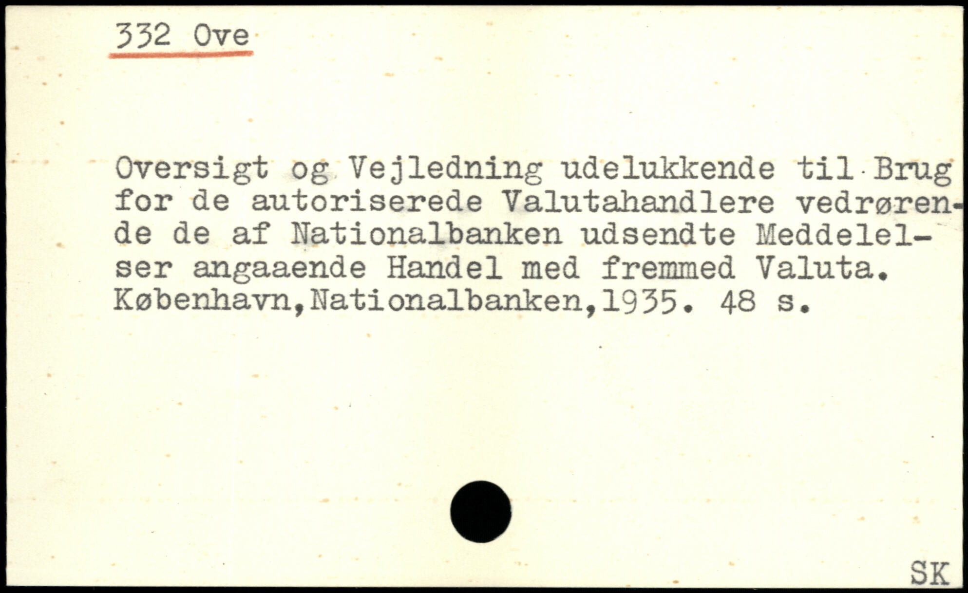 Oversigt og Vejledning udelukkende til Brug for de autoriserede Valutahandlere vedrørende de af Nationalbanken udsendte Meddelelser angaaende