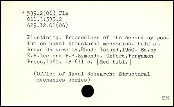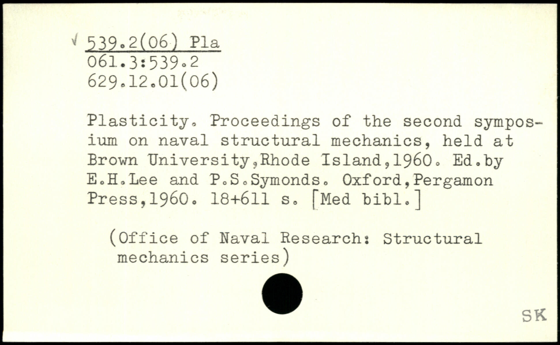 Plasticity, Proceedings of the second symposium on naval structural mechanics, held at