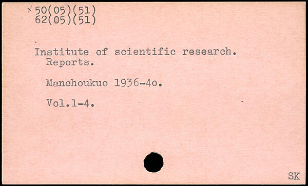 Institute of scientific research. Reports. Manchoukuo 1936-4o.