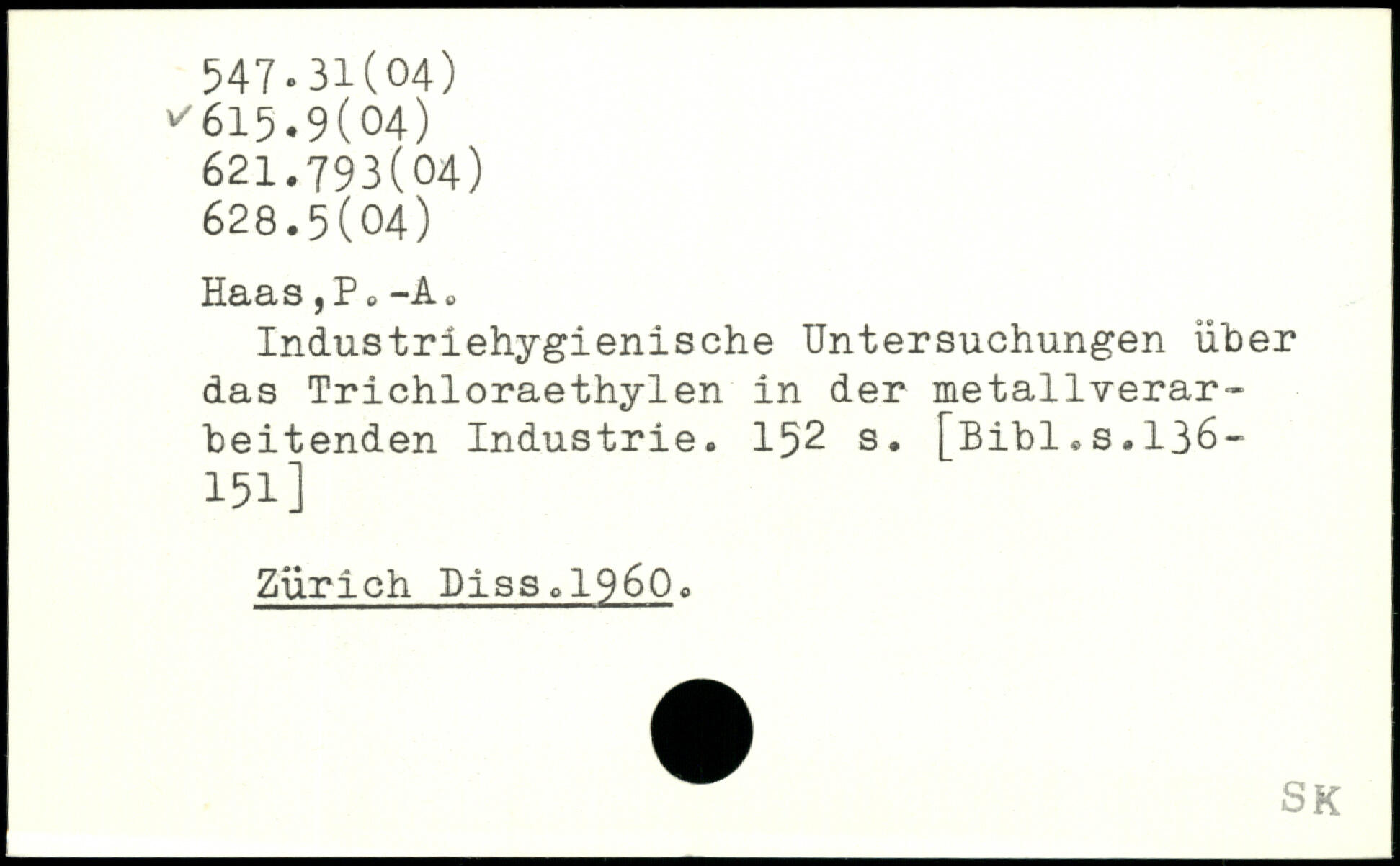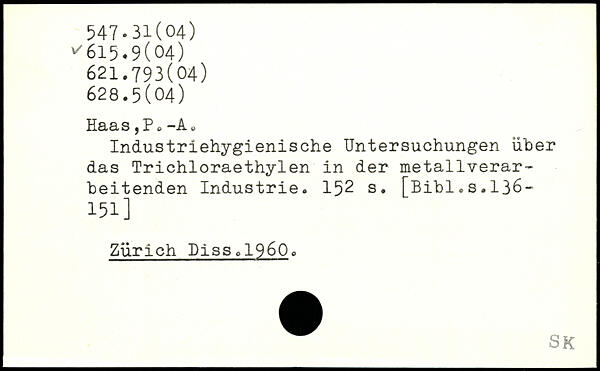 Industriehygienische Untersuchungen über das Trichloraethylen in der metallverarbeitenden Industrie.