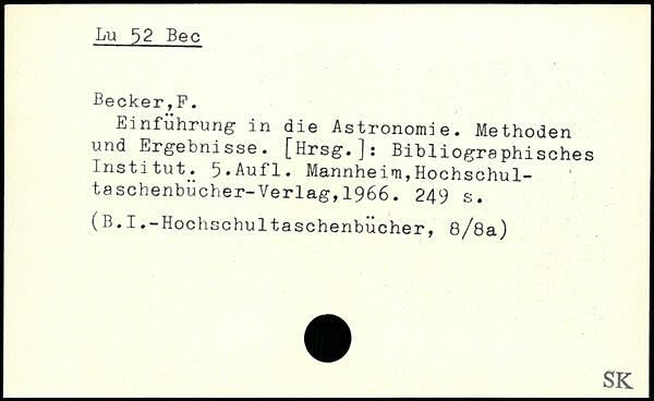 Einführung in die Astronomie. Methoden und Ergebnisse. [Hrsg.]: Bibliographisches Institut.