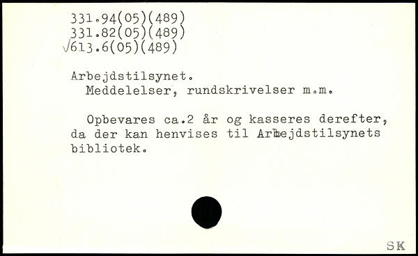 Meddelelser, rundskrivelser num,, Opbevares ca.2 år og kasseres derefter, da der kan henvises til Arbejdstilsynets biblioteko