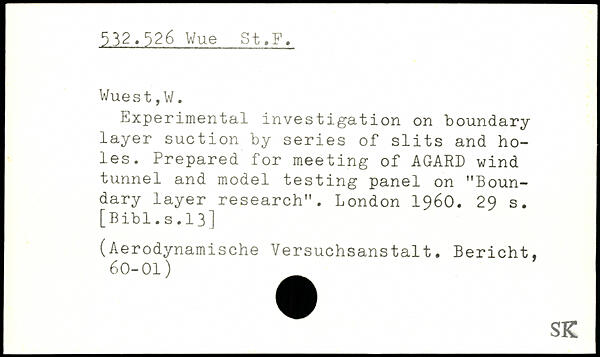 Experimental investigation on boundary layer suction by series of slits and holes. Prepared for meeting of AGARD wind tunnel and model testing panel on "Boundary layer research".