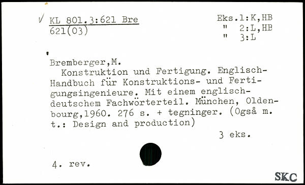 Konstruktion und Fertigung. Englisch-Handbuch für Konstruktions- und Fertigungsingenieure. Mit einem englischdeutschem Fachworterteil.