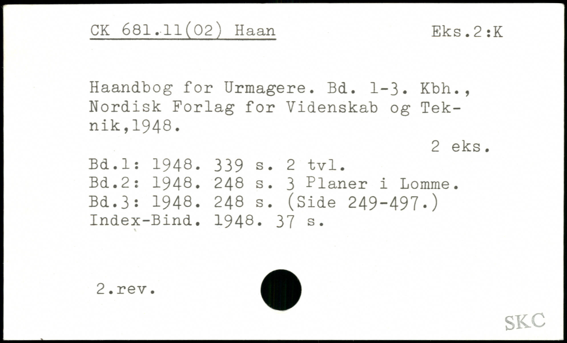 Haandbog for Urmagere. Bd. 1-3. Kbh., Nordisk Forlag for Videnskab og Teknik , 1948.