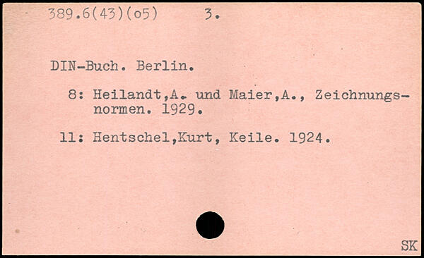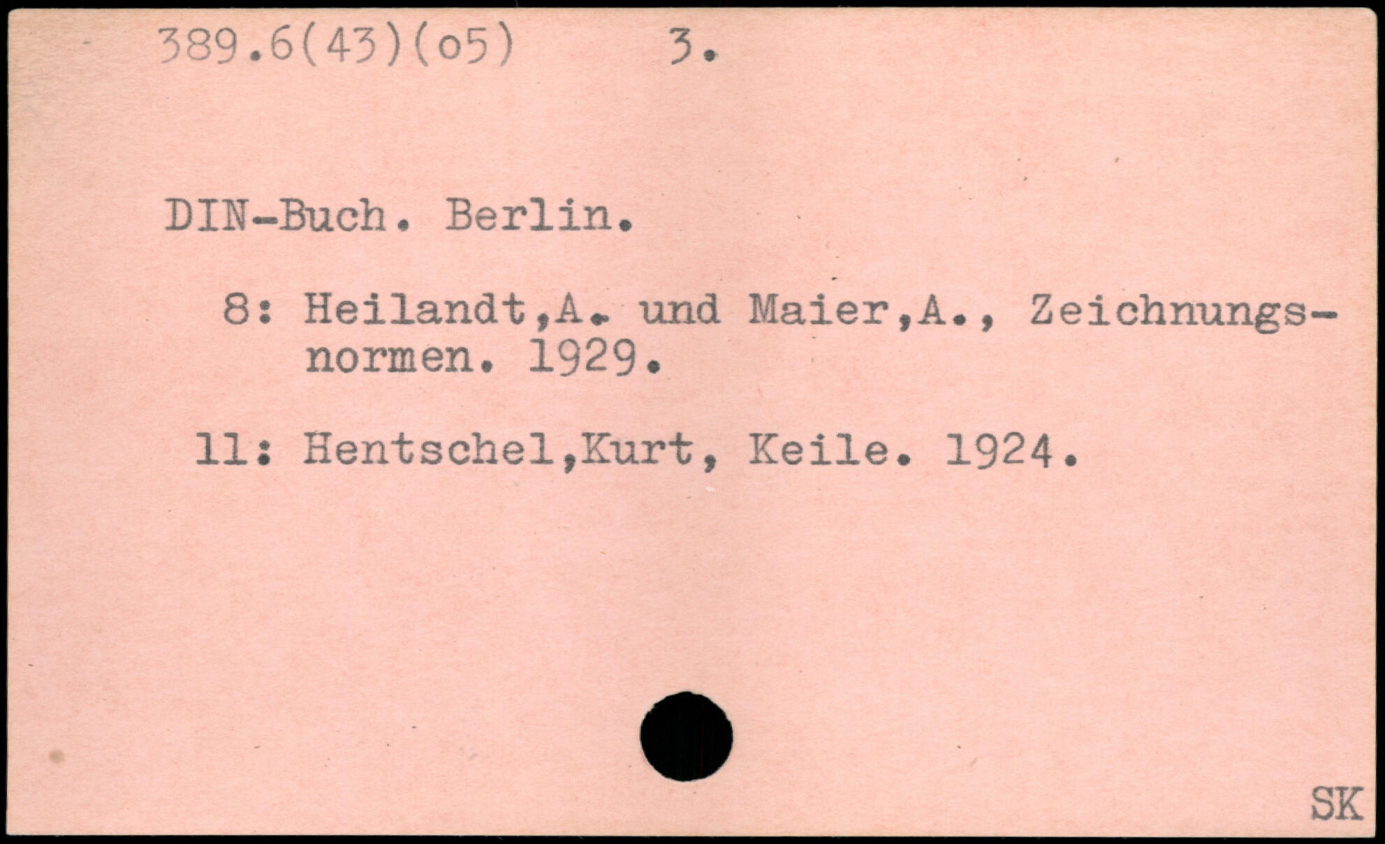 DIN-Buch. Berlin. 8: Heilandt,A, und Maier,A., Zeichnungsnormen. 1929. 11: Hentsche1,Kurt, Keile. 1924. _SK