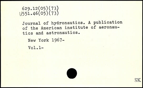 Journal of hydronautics. A publication of the American institute of aeronautics and astronautics. New York 19&7-Vol.l-