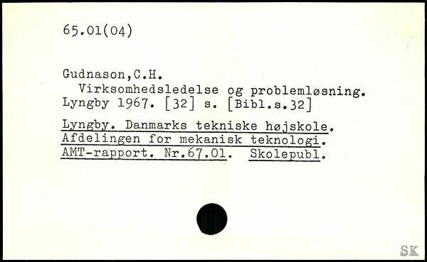 Virksomhedsledelse og problemløsning. Lyngby 1967. [32] s.