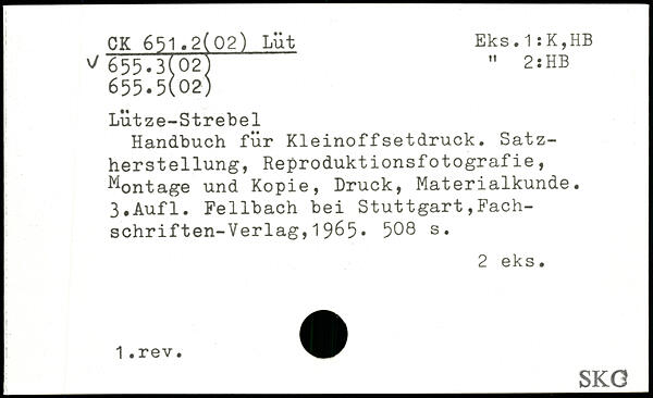UDK: 651.2(02) Lüt, 1, 2, 655.5(02)