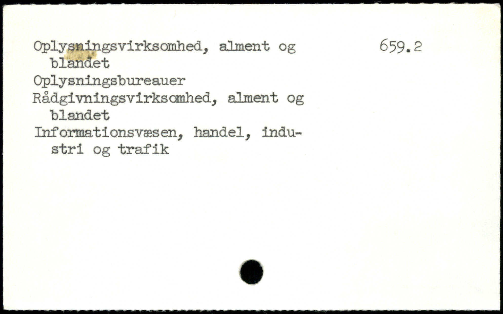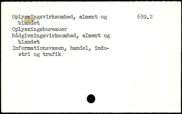 Oplysningsvirksomhed, alment og 659.2 blandet Oplysningsbureauer Rådgivningsvirksomhed, alment og blandet Informations væsen, handel, industri og trafik