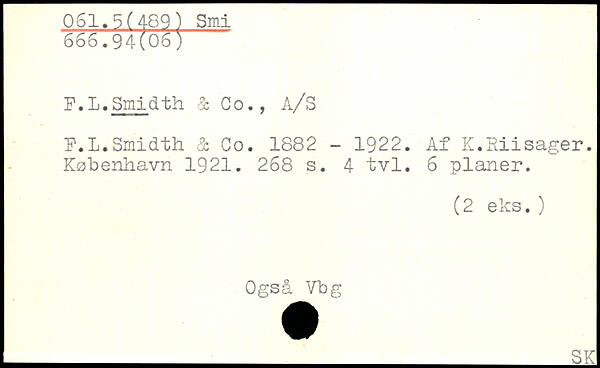 F.L.Smidth å Oo. 1882 - 1922. Af K.Riisager.