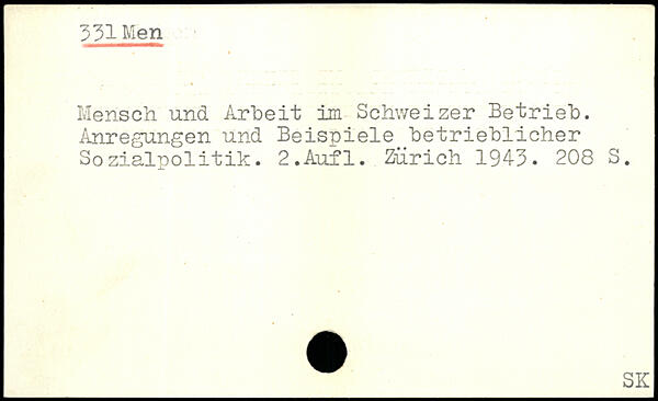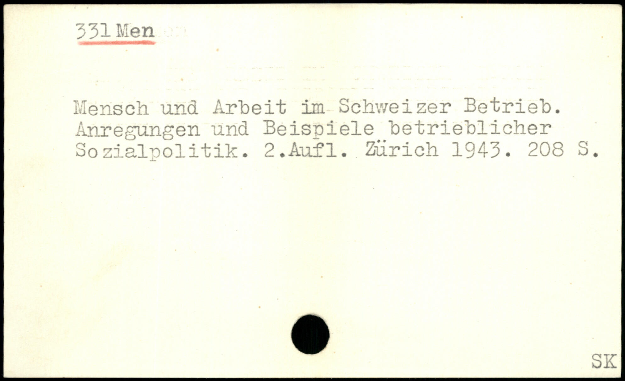 Mensch und Arbeit im Schweizer Betrieb. Anregungen und Beispiele betrieblicher Sozialpolitik.