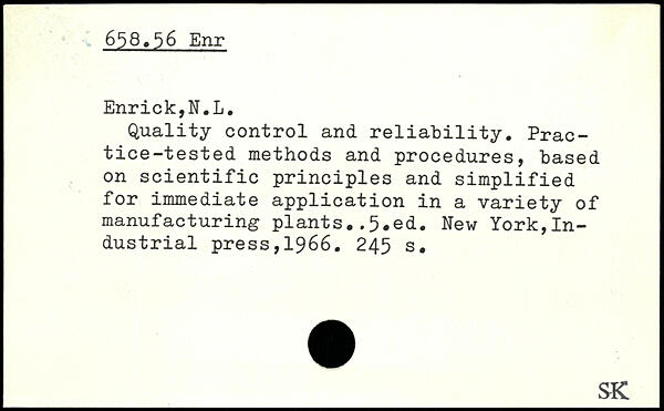 Quality control and reliability. Practice-tested methods and procedures, based on scientific principles and simplified for immediate application in a variety of manufacturing plants..