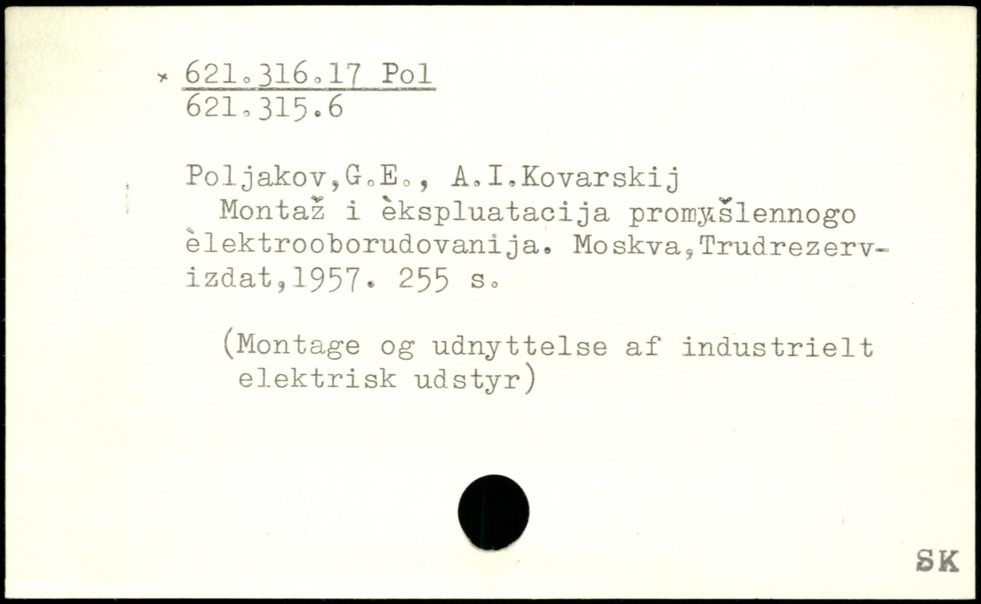 , Poljakov,G,E0, A,I,Kovarskij Montaz i ekspluatacija promoslennogo elektrooborudovanija. Moskvas Trudrezerv- izdat,1957.