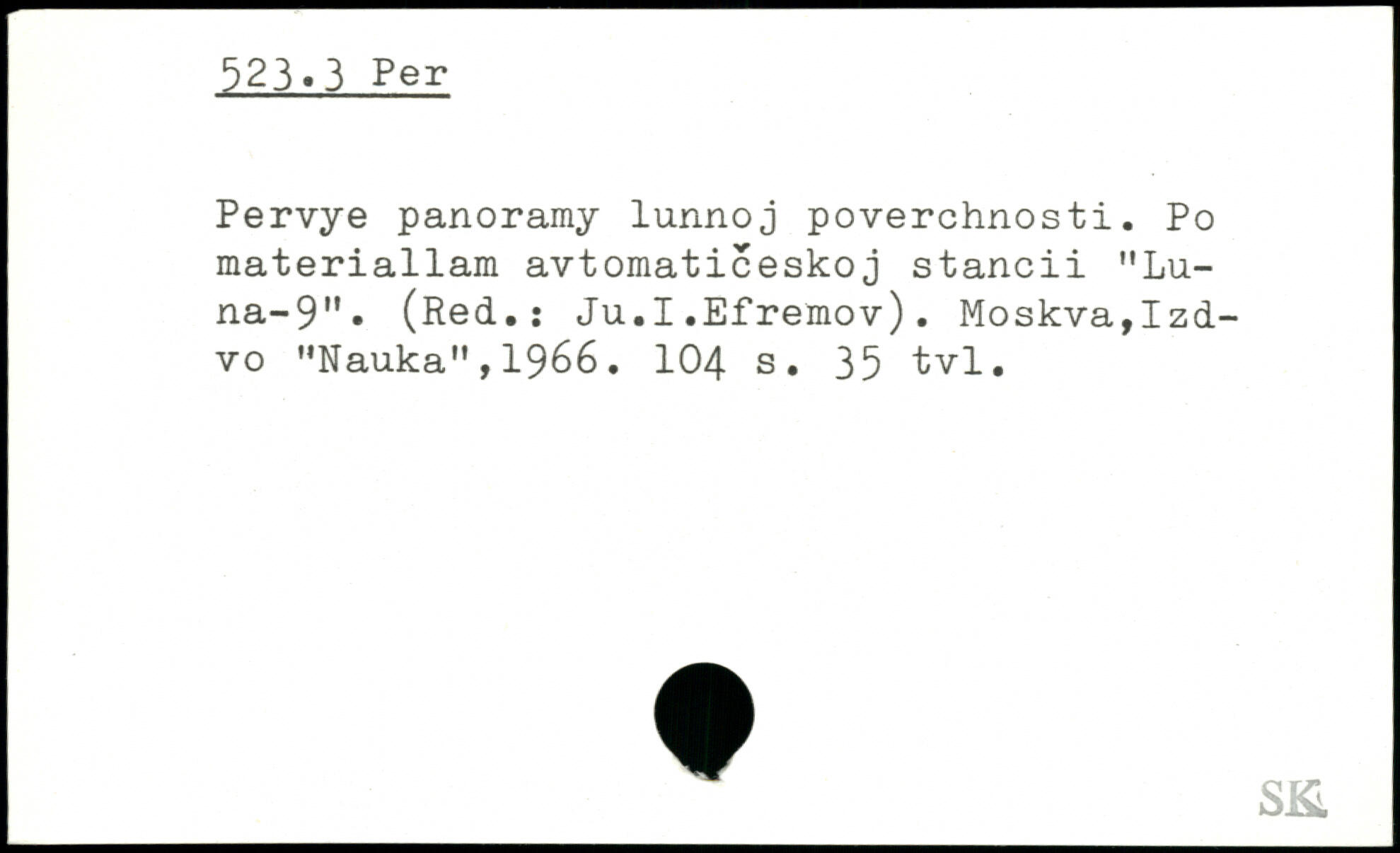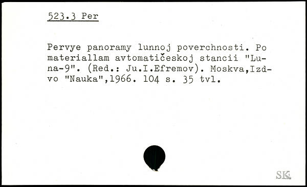 Pervye panoramy lunnoj poverchnosti. Po materiallam avtomaticeskoj stancii MLu-na-9". (Red.: Ju.I.Efremov). Moskva,Izd-vo "Nauka",1966. IO